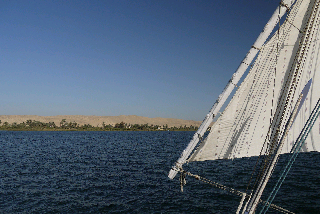 We are on the Nile, sailing South for the next five days on a classic two masted dahabia. Six cabins and a crew of maybe six. This morning was busy with visits to the tombs in the Valley of the Kings and Valley of the Queens. Standing in King Tut's tomb I am surprised how small it is, compared to the others we see. Near the tombs are the ancient Colossi of Memnon, where Uncle Gus waxed poetic nearly 140 years ago.